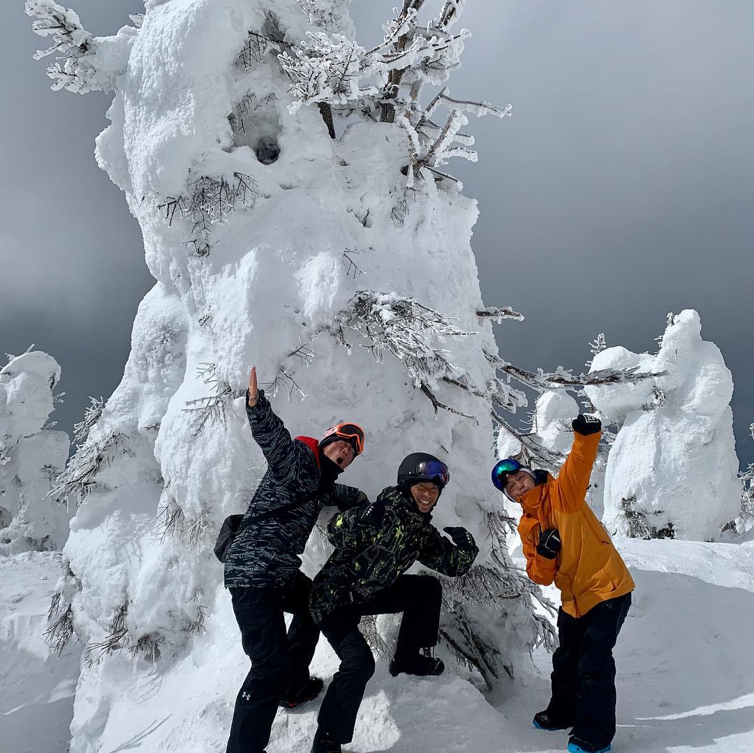 という事で少し観光兼ねてスノボ仲間の的場寛壱と武ちゃんと共に午前中は人生初の樹氷を見にゴンドラで山頂へ。
