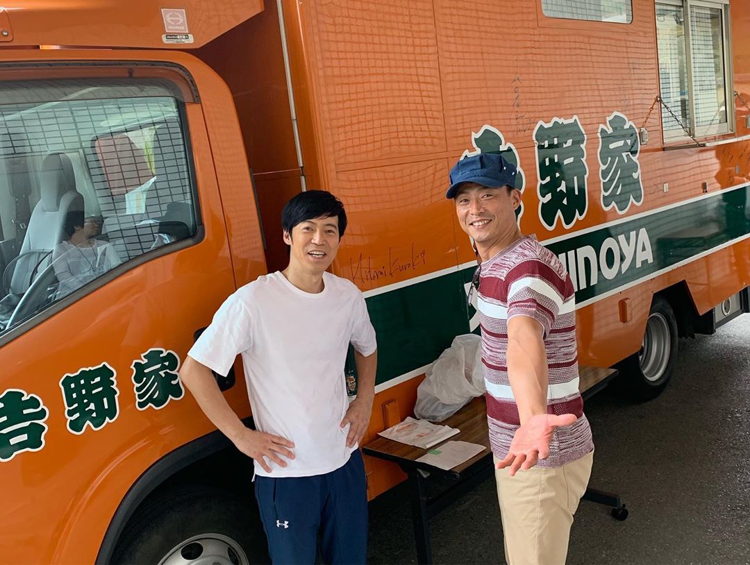 恐るべし熱海五郎一座⤴️⤴️⤴️終了後に楽屋挨拶に訪れたら何と東Maxが吉野家のキッチンカーを手配していました。とんでもない差入れ‼️ちゃっかり帰りの新幹線で食べようとゲット😁😁😁