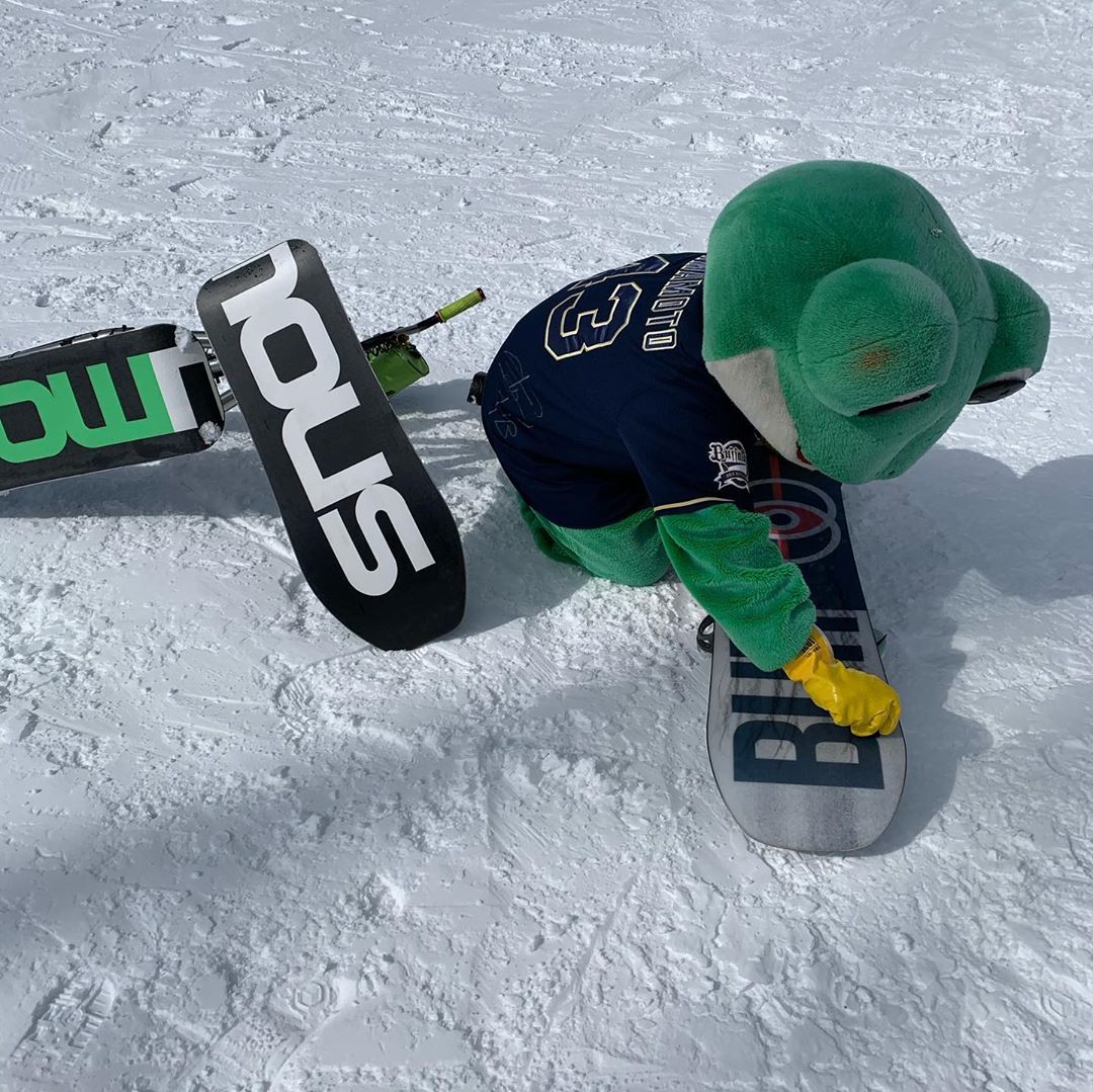 そこで東鉢で活躍するキャラクター、大のORIXファンのケロロスと遭遇😁ずっと一緒に滑ってただけでなく途中で私の板にワックスを塗ってくれるという何と優しい⤴️⤴️⤴️