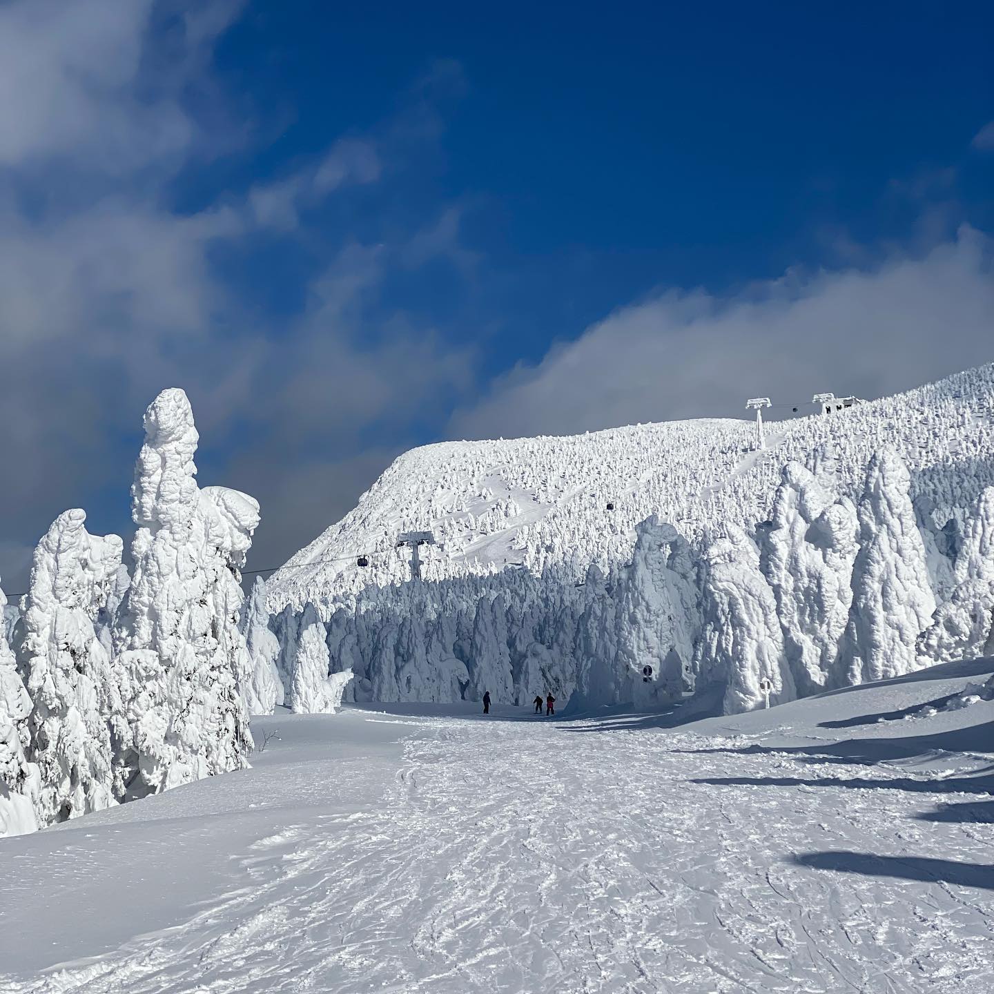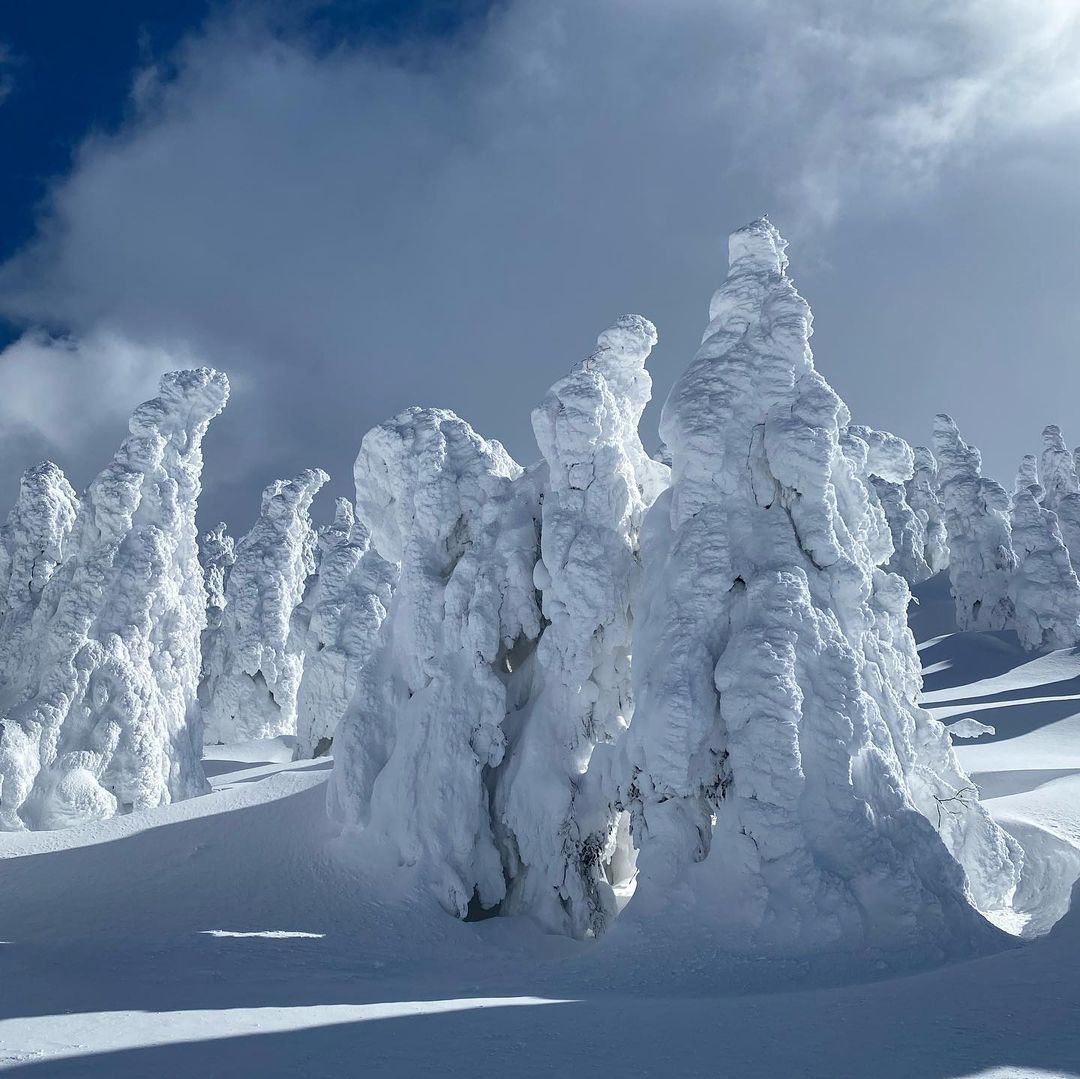 スキーやスノボする人は天気が良ければ山頂からこの樹氷に覆われたコース滑るとワクワク感たまりません‼️