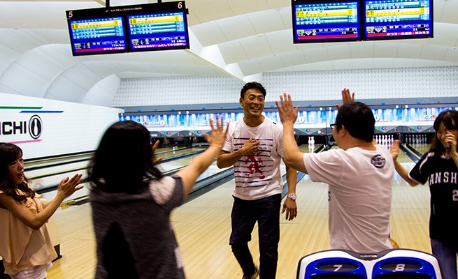 同じチーム同士でアドバイスをしあったり、ストライクやスペアをとった時のハイタッチに僕も混ざったりで、すごい盛り上がりでしたね!